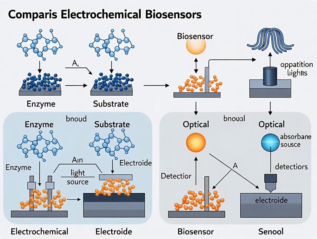 Biosensors integrate a biological recognition element with a physicochemical transducer to produce a measurable signal proportional to analyte concentration. The choice between electrochemical and optical transduction significantly impacts sensor performance, application suitability, and operational requirements.
