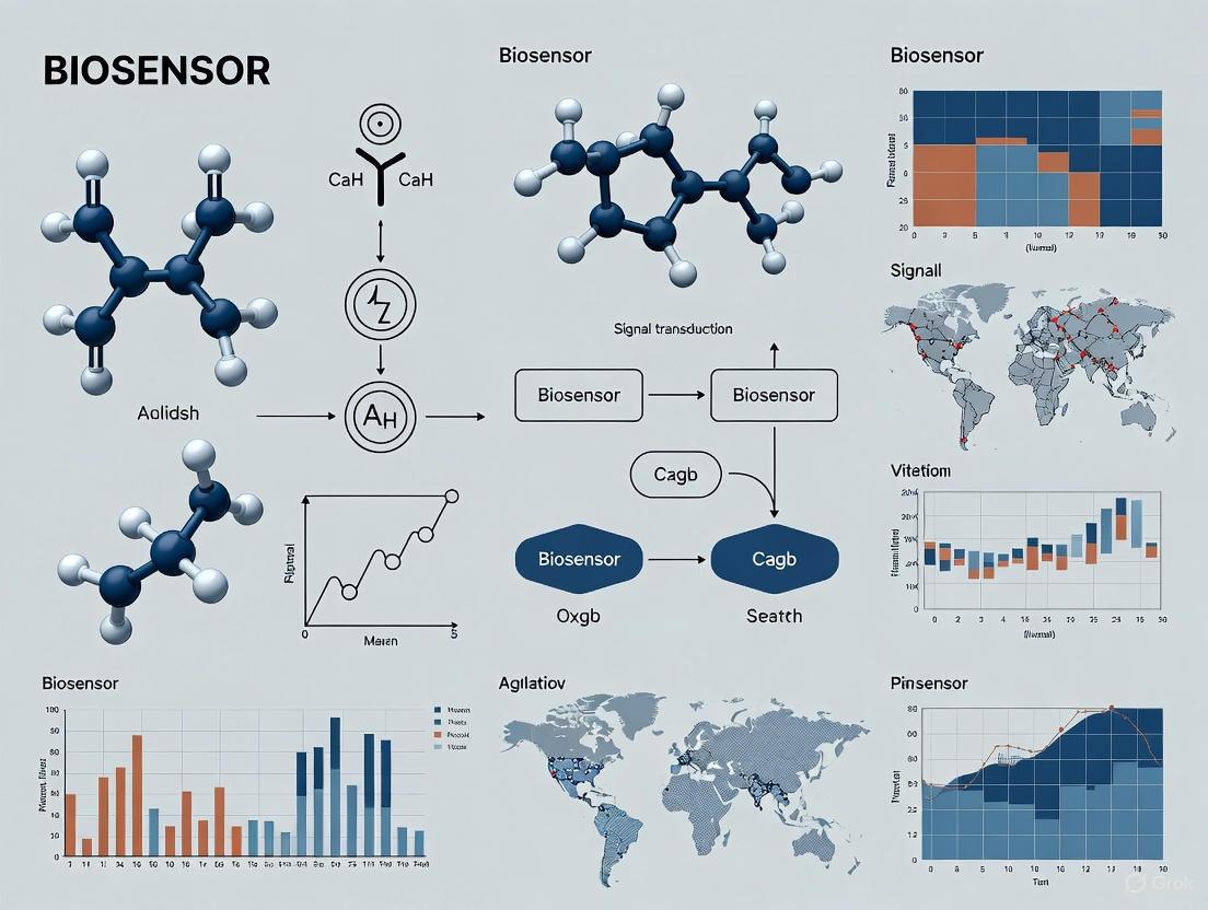 Diagram 1: Electrochemical Biosensor Architecture. This diagram illustrates the standard three-electrode electrochemical cell setup (A) and the sequential process of signal transduction (B), from analyte binding to the generation of a measurable electrical signal.