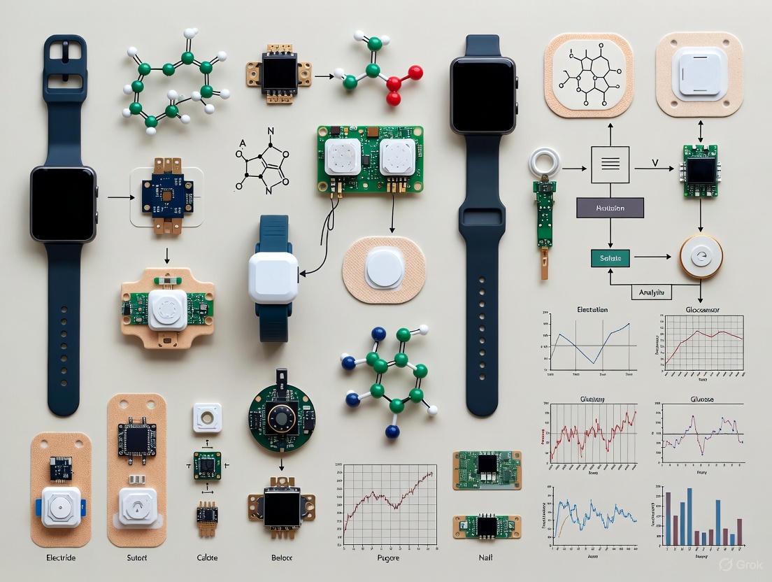 Validation should progress from in-vitro testing in controlled laboratory conditions to in-vivo testing in realistic use environments [1] [2]. This includes assessing sensor performance during physical activity, environmental changes, and over extended wear periods. Additionally, correlation between analyte concentrations in non-invasive biofluids (e.g., sweat, tears) and blood levels must be established for clinical relevance [1] [3].